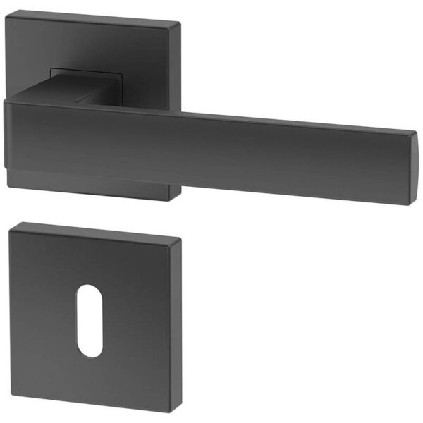 Mânere uși de calitate din aliaj usor AlZn în finisaj grafit cu rozetele pentru cheie incluse.