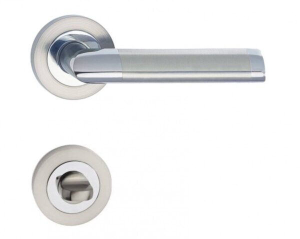 Mânere uși JARO R crom-nichel satin cu rozetă wc